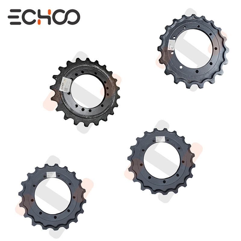 Os engrenagens motrizes giram a unidade de trilha através da malha com a cadeia de trilho, transmitindo o binário de tração do motor hidráulico correspondente para a cadeia através da caixa de velocidades,que faz com que a unidade de trilho se mova.